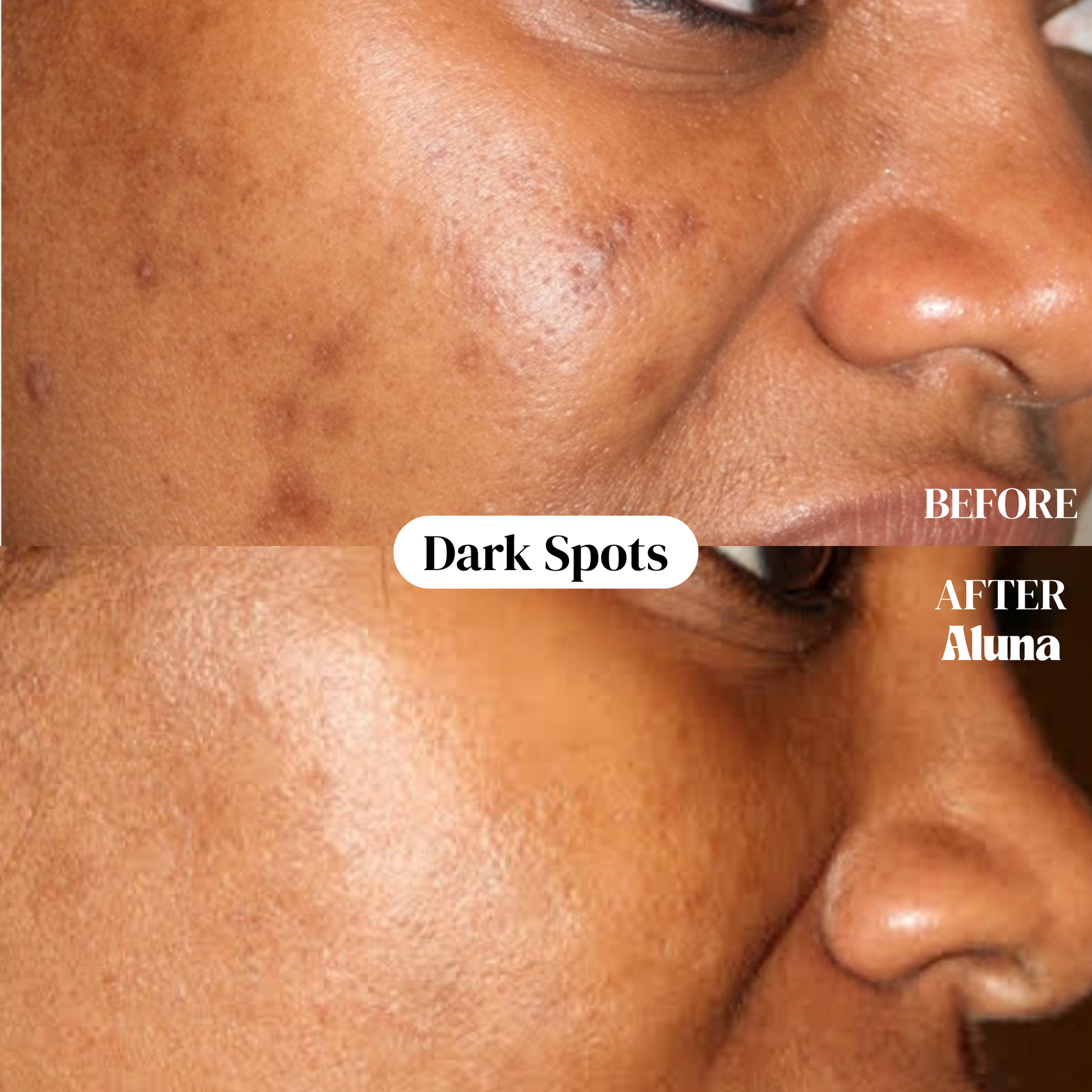 Gently corrects hyperpigmentation and dark spots, revealing a glowing complexion in harmony with your melanin, without harsh chemicals or irritation.